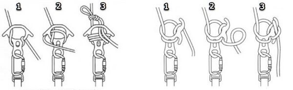 מבנה השמינית- עיגול קטן אליו מתחברת הטבעת של הרתמה (או התחנה) ועיגול גדול שבו מעבירים את החבל, ניתן באותה צורה להעביר גם שני חבלים.