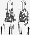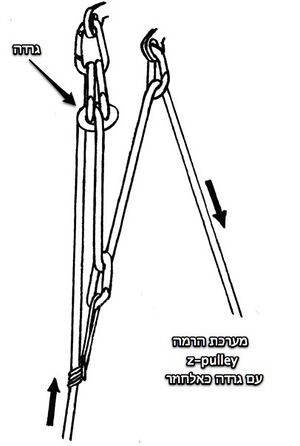 אלחוזר שנוצר מהעברת החבל בשתי טבעות. פשוט ומהיר לבניה, ללא הפסד גובה בעצירה.