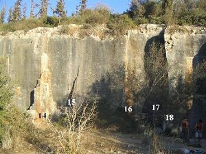 הסלע מסיבי (חסר שיכוב) ומחוספס כיוון שהוא בנוי רסק מאובנים שנוצר מבליה של מבנים שוניתיים. אופי פני הסלע מושפעים בעיקר מאופי החציבה והבליה המחוספסת היא תוצאת החשיפה של פני הסלע החצובים לאטמוספירה.