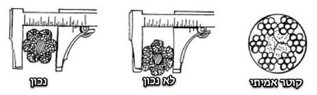 כבלים נמדדים לפי קוטרם, בדומה לחבלים. מדידת קוטר הכבל נעשית במקום בו המדידה נותנת ערך מקסימלי.