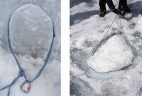 כדי ליצור עגינה כזו קודחים בקרח שני חורים בעזרת בורג, כך שתיווצר מנהרה דמויית האות v. משחילים בה, בעזרת כלי דק וארוך פיסת חבל דק וקושרים אותה ללולאה המשמשת כעגינה. שיטה זו נקראת: v-thread anchor או Abalakof. ניתן לייצר כלי כזה מקולב בגדים ישן או כל חתיכת חוט ברזל עבה, או לבזבז כסף טוב ולקנות כזה מוכן...