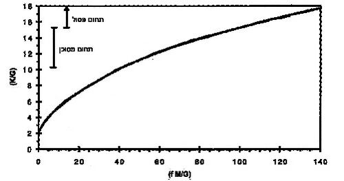 קצת פרשנות: [math]\displaystyle{ K }[/math] הוא הכוח המירבי (the impact force), ו-[math]\displaystyle{ ff\cdot M }[/math] הוא כוח המתיחה שיתקבל בחבל, אם יימתח בדיוק באורך [math]\displaystyle{ h }[/math]. במשוואת הבלימה שני הכוחות אלה מבוטאים לא ביחידות של קילוגרמים או ניוטונים, אלא ביחס ל-[math]\displaystyle{ g }[/math], למשל [math]\displaystyle{ 3g }[/math], [math]\displaystyle{ 10g }[/math] וכו'. משואת הבלימה אומרת בסה"כ שאם ידוע אחד הכוחות האלה, אפשר לפיה לחשב גם את השני. התלות בין שני הכוחות האלה מוצג בצורה גראפית בציור 17.2, ורואים שה [math]\displaystyle{ ff\cdot M }[/math] הגבולי מבחינה בטיחותית הוא כ-[math]\displaystyle{ 40g }[/math]. כדאי לזכור שהכוח [math]\displaystyle{ ff\cdot M }[/math] והכוח [math]\displaystyle{ K }[/math] לבדם, אינם מהווים קנה-מידה שלם לחומרתה של הנפילה, שכן משך הזמן שהכוח פועל לא נלקח בחשבון (ראה גם ציור 9.2 בפרק על פסילה של חבל הובלה). עוד כמה דברים מעניינים שרואים ממשואת הבלימה ומציור 17.2: