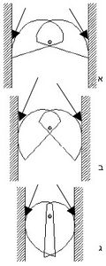 העקומה הזו, שתיארנו, היא הצורה הבסיסית המשמשת לפרנדים, קאמלוטים, אליאנס וגם טריקמים. בפרנד, הכוח מופעל לאורך קו היוצא מן המוקד (הציר של הכנפיים), ומוביל אל נקודת המגע. במקרה שלנו נקודת המגע היא על דופן החריץ. המבנה של הכנפיים, כעקומה שומרת זוית, גורם לכך שהזווית בין הכוח המופעל לבין משטח המגע נשארת קבועה. ניתן לראות זאת בציורים 18.4 א, ב, ו- ג. בציורים אלה מתואר אותו הפרנד בחריצים שונים ברוחבם, אולם זווית המגע עם דפנות החריץ אינה משתנה (החיצים מורים על נקודות המגע).