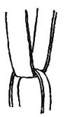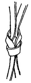 - הארכה של חבל עגול (כמו של רוב העוגנים) ברצועה שטוחה פחות מומלצת, אבל אם אזלו הטבעות ויש צורך בהארכה, אין טעם להיות עבד למילה 'אסור'. כשהחבל מספיק עבה, למשל חצי רוחב הרצועה או יותר, ובמיוחד כשמקפידים על צורה נכונה (מוטב כמו בציור 3.5 מאשר כמו בציור 3.6, אבל נמצא שההבדל אינו משמעותי) הסכנה שהרצועה תיקרע 'קריעת נייר' אינה חמורה. אם החלק העגול הנו דק, לעומת זאת (למשל כמו כבל פלדה של רוב העוגנים הקטנים), זה מהווה מצב מסוכן והרצועה עלולה להיחתך.