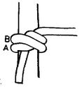 קשר לופת, כאמור, הוא הקשר הבא בקשר דייגים כפול. הוא קשר חדש יחסית (מוכר מאמצע המאה העשרים, בסה"כ), בטיחותי מאד, קומפאקטי, ומומלץ בכל המאמרים בהם יש התייחסות אליו. אותו הקשר רק בלי ההצלבה הוא הנקרא 'קשר עוגן' (ציור 5.3). גם הוא קשר בטיחותי וטוב, אבל רק כשאין ספק שהמתח יבוא תמיד בניצב למוט, למשל כשקושרים חבל לטבעת עגולה (כמו בעוגנים של ספינות, ומכאן כנראה שמו של הקשר). שים לב שכדי לעבור מ- 'עוגן' ל- 'לופת' די להעביר את הליפוף השני B מעל לליפוף הראשון A כמתואר בציור 5.4, מבלי לפרק את הקשר.