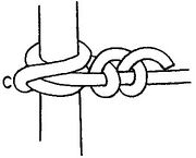 ציור 5.8 מתאר את הסידור המוצע לקשר מוט עם אבטוח של עוד קשר מוט על החבל המתוח, כאשר ההצלבה C הועברה לצד האחורי של המוט. כדאי לציין כאן, שבכל הקשרים הלופתים פעולת הלפיתה באה הודות להצלבה, ושהלפיתה הזאת הולכת ונחלשת ככל שהמוט עבה. חשוב לזכור זאת ולהימנע מלקשור קשר מוט (או לופת, או חנק) בחבל 9 מ"מ, למשל, סביב ענף עבה של עץ, דבר שהוא לגמרי חסר טעם.