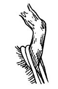 3. מצב מסוכן במיוחד נוצר ע"י כיפוף מעין זה אם העוגן תפוס בנקודה אחרת, שאינה על הגשר עצמו (ציור 7.5). הגשר משמש אז כ'גלגלת', ובמקרה של נפילה יופעל עליו כוח שהוא עד כפליים מכוח הנפילה. גם במצב זה היה עדיף כבר להעביר רצועה בגשר, בניגוד גמור לחוק הגשר המצוטט בשאלה.