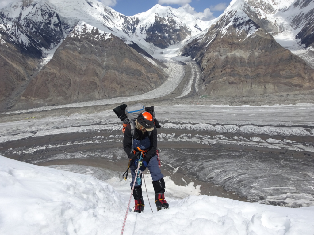 יום שלישי – עלייה לקמפ 3. הפעם, כשהיינו יותר מאוקלמים והרגשנו חזקים אבל כבדים. עם ציוד לינה ואוכל ובישול זה לקח כשש שעות, כולל ירידה של כ-300מ'. עם גלישה אחת אנכית של כ-15מ'. והגענו למחנה 3, באוכף, בגובה 5900מ'.