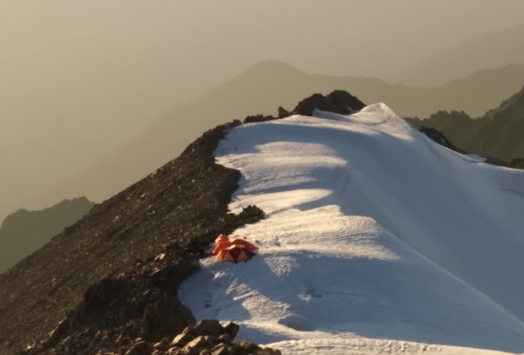 האוהלים שלנו, מתחת לפסגת אוצ׳יטייל, מצולמים מהפסגה