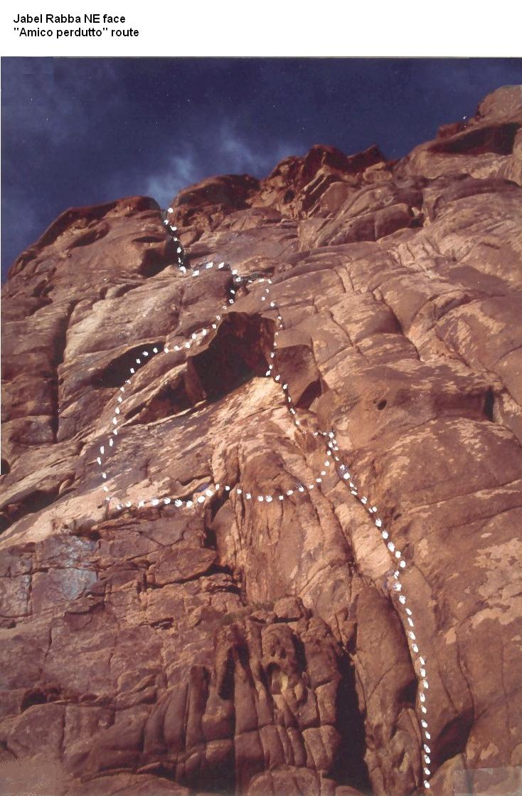 First ascent: Giuseppe Gallizia, Nir Yarkoni, 1984, 7 pitches, VI-, J.Rabba, NE corner