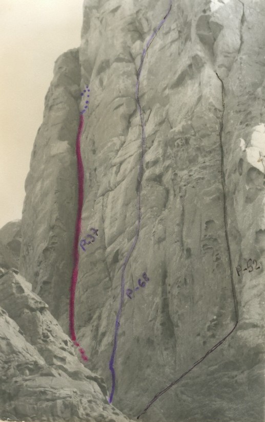 First ascent: Bruce Devens, Victor Kaftal, 1977, 4 pitches, IV, J.Rabba, Little Rabba