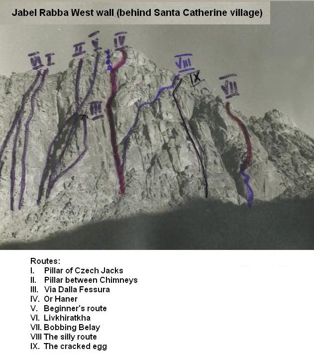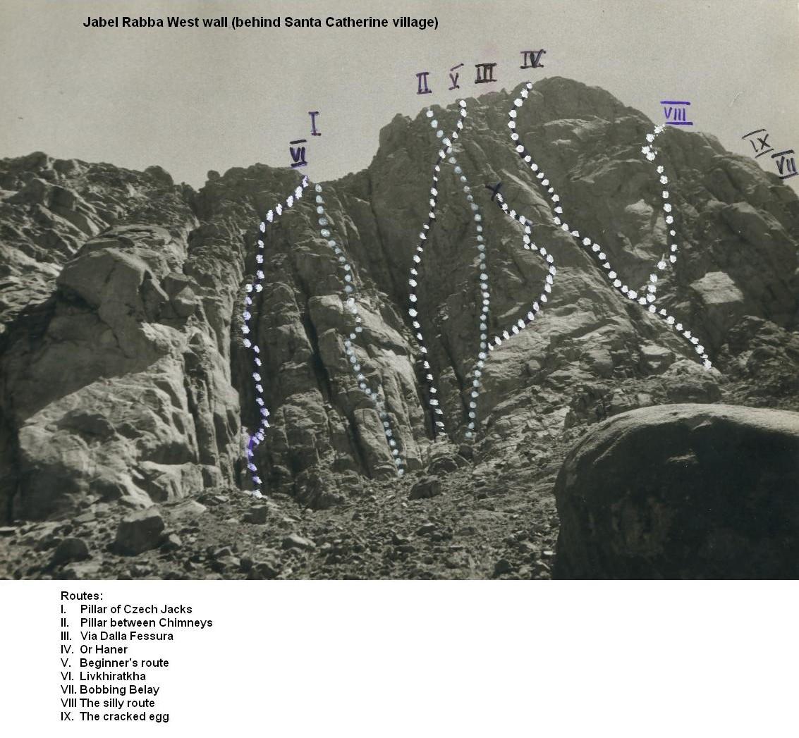 J.Rabba is a independent mountain separated from Safsafa - Musa - Fara massif by big and deep valley El-Leja and situated above upper part of St.Catherine village and Field school. The cliff faces mainly to North, West and East.