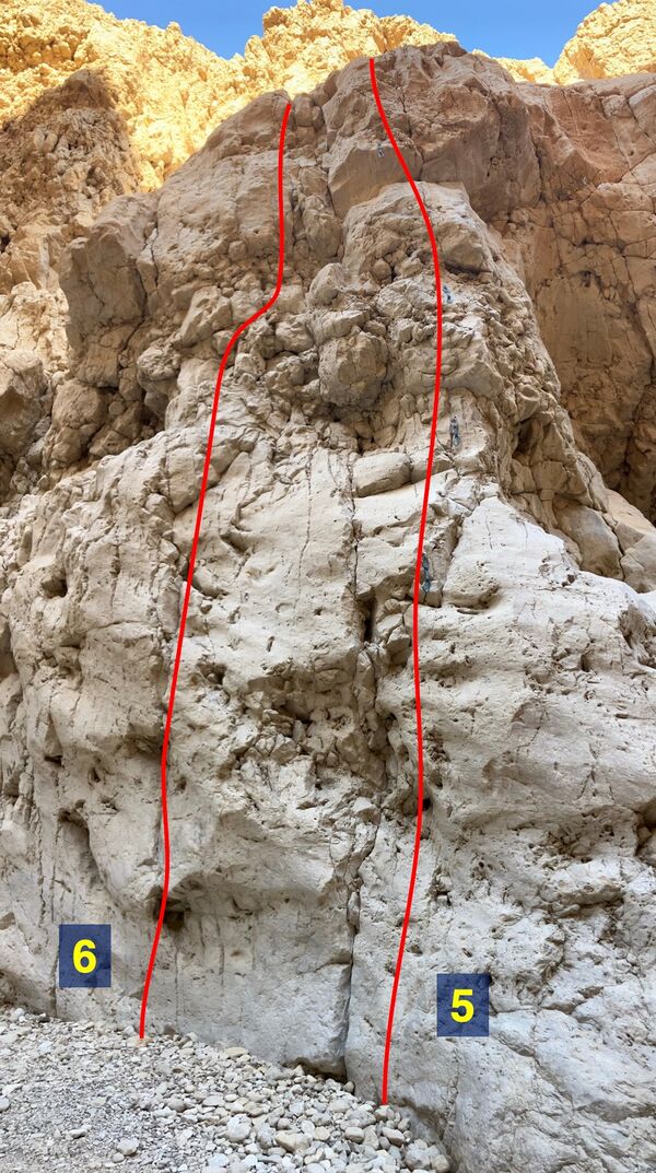 ניתן לטפס מסלולים אלו מתחנת הביניים שעל המדף או לחבר עם המסלולים שמתחת בצירופים שונים לפיצ'ים באורך של כ-30מטר. בטיפוס כפיצ'ים ארוכים מומלץ לדלג על תחנת הביניים ולשים ראנר ארוך בבולט ראשון מעל המדף ע"מ לצמצם ropedrag.