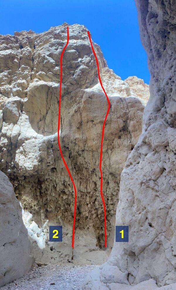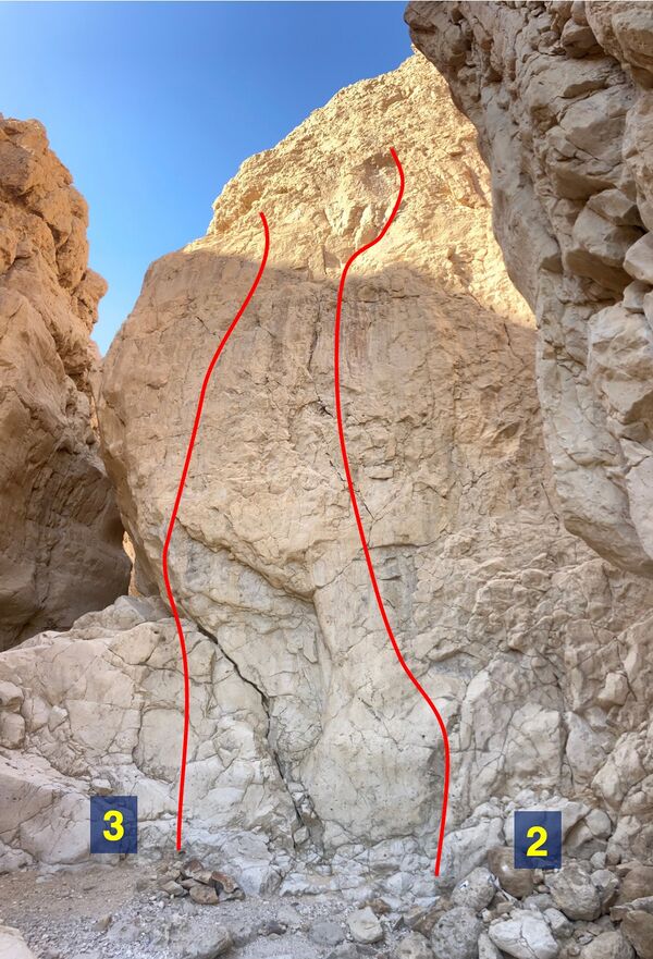 המסלולים הארוכים ביותר הם של 27מ׳, אז חבל 60מ׳ יספיק לכל המסלולים. 16-17 ראנרים יידרשו למסלולים הארוכים ביותר. ברשימת המסלולים מצויין מספר הבולטים לכל מסלול (ייתכנו אי-דיוקים, כמובן).