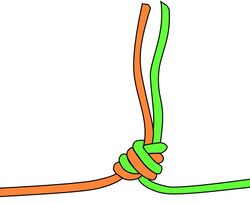 לוקחים את קצוות שני החבלים יחד, מדמיינים שהם חבל אחד עבה וקושרים קשר לופת. זהו!